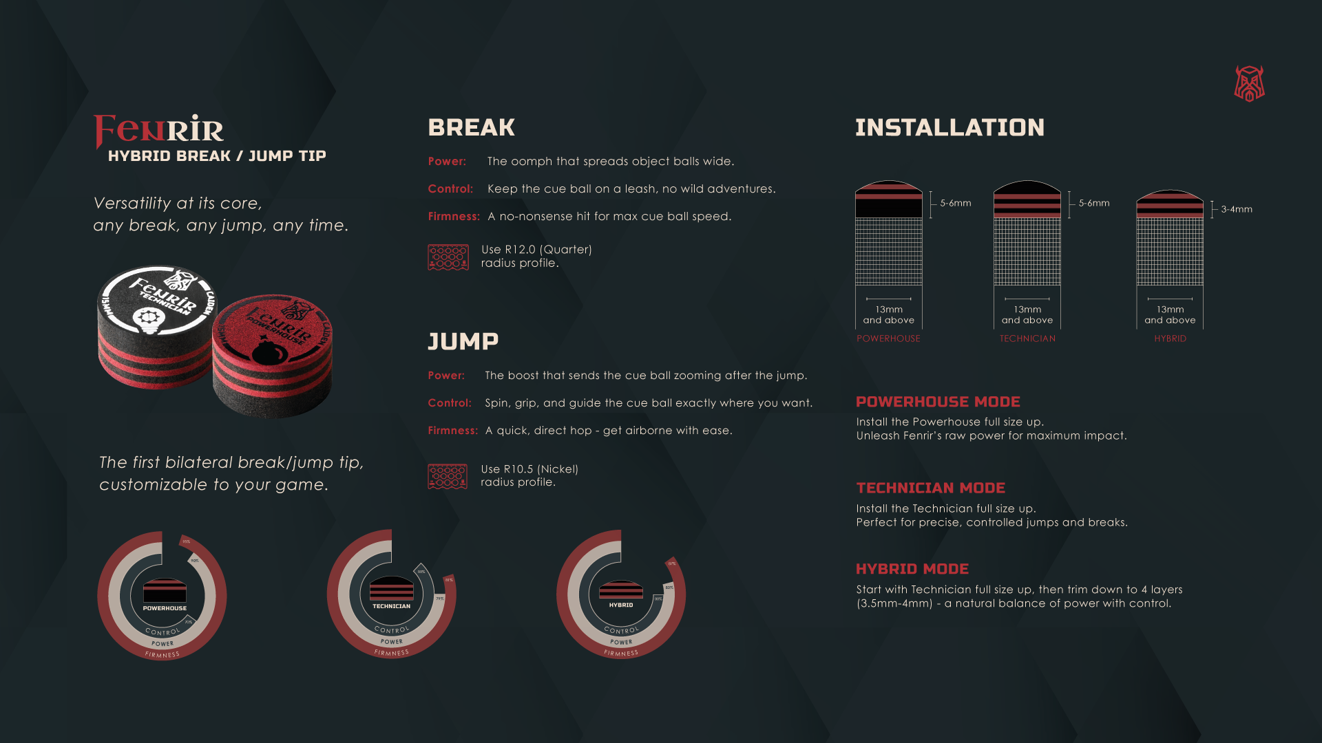A revolutionary breakthrough, world’s first bilateral break/jump tip. The bilateral tip offers unparalleled versatility, allowing you to configure it in three distinct modes to perfectly align with your unique style and game play.